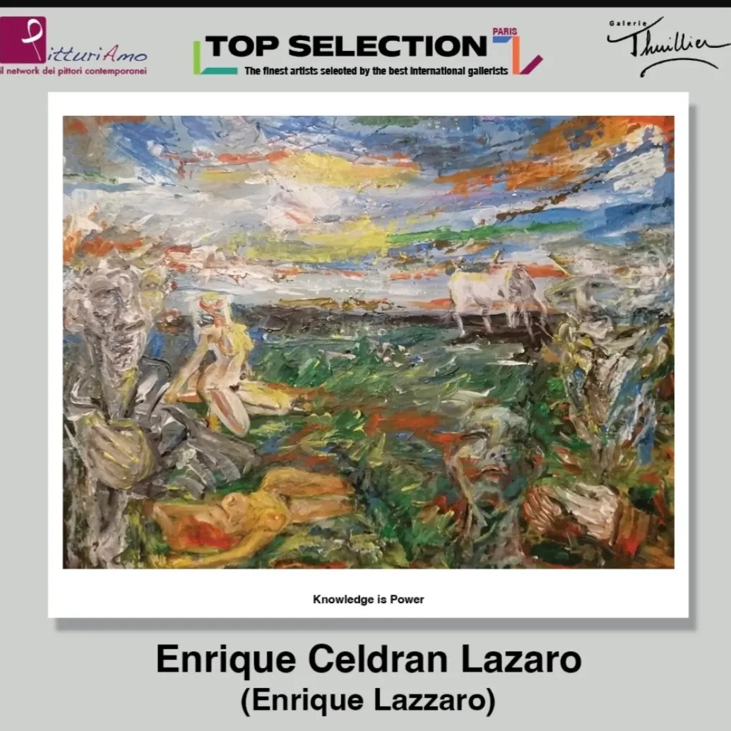 Enrique Lazzaro was born in Barcelona in 1974 and since he was a child had a great devotion for drawing and looking at the great painters work to learn their techniques. He had a great art teacher who was his father that had very good skills and taste for arts. Enrique started making caricatures for events at the weekends when he was only 18 years old, later he got very good skills as a graphic designer and as a photographer. In 2008 he decided to paint to explore his creativity and since then his creativity has been growing up gradually inspired by great artists like Picasso ,Jack B. Yeats, Cezanne, Tapies, Joan Miro… so he absorbs their technique and steals the essence to create another magic scenario …